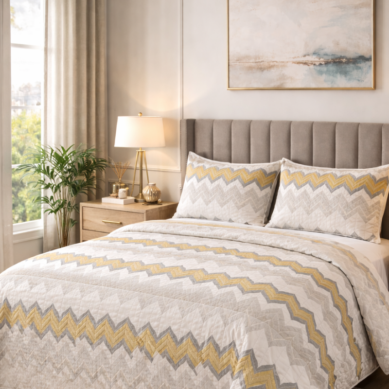 A comforter is a type of bedding that provides warmth and comfort while sleeping. It typically consists of a soft, insulating material, such as down feathers, synthetic fibers, or a combination of both, encased in a decorative outer fabric. Comforters come in various sizes to fit different bed sizes, ranging from twin to king. They often feature stitched patterns or quilting to keep the filling evenly distributed and prevent bunching. Comforters are designed to be used alone or layered with other bedding, such as sheets and blankets, to create a cozy sleeping environment. They’re available in a wide range of colours, and patterns to suit personal preferences and decor styles. Overall, comforters provide warmth, softness, and style to enhance the comfort of your bed.